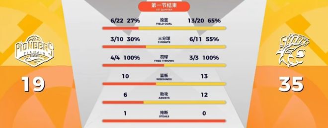 首节结束两队技术统计