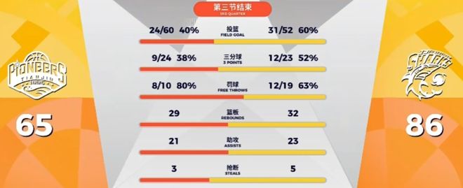 弗格本场在防守端表现积极,他又连续通过抢断和前场篮板帮助球队拿到二次进攻机会。不过天津队并没有放弃,通过加强防守强度阻止了分差被进一步拉开。三节战罢,上海男篮86-65领先。
